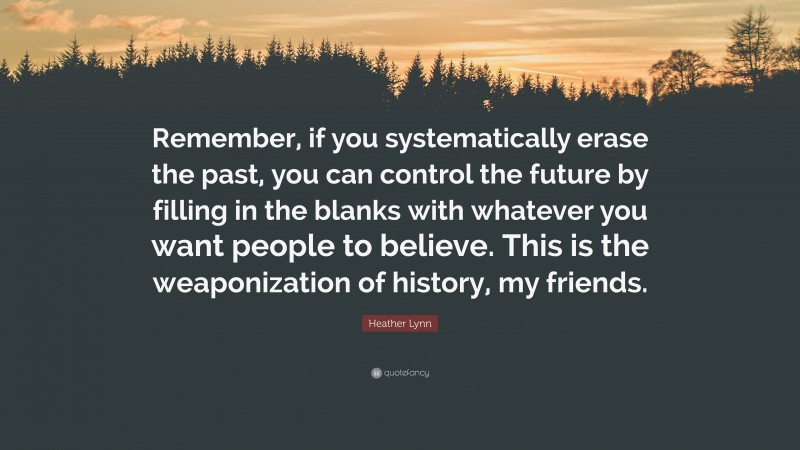 “Remember, if you systematically erase the past, you can control the future by filling in the blanks with whatever you want people to believe. This is the weaponization of history, my friends.”