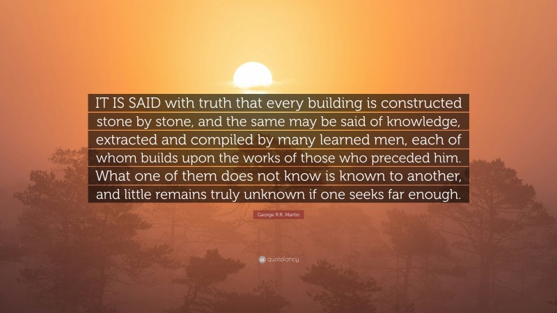“IT IS SAID with truth that every building is constructed stone by stone, and the same may be said of knowledge, extracted and compiled by many learned men, each of whom builds upon the works of those who preceded him. What one of them does not know is known to another, and little remains truly unknown if one seeks far enough.”