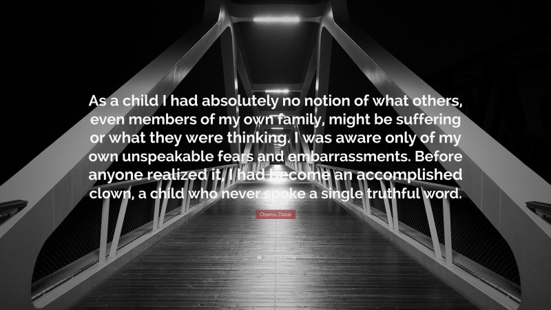 “As a child I had absolutely no notion of what others, even members of my own family, might be suffering or what they were thinking. I was aware only of my own unspeakable fears and embarrassments. Before anyone realized it, I had become an accomplished clown, a child who never spoke a single truthful word.”